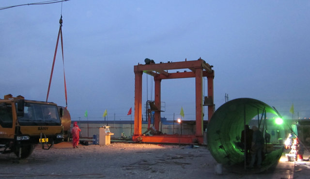 為了和時(shí)間賽跑,搶在洪水到來(lái)之前完成施工任務(wù),保證一級電站后期項目的正常施工和運行,工區精心組織施工隊伍,由副主任王朋朋和項目經(jīng)理王山焱負責在七天內完成100米長(cháng)的穿越東干渠、直徑分別為3米、2.5米各50米約100噸重的管道制作安裝任務(wù)。