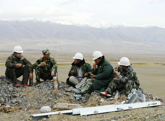由于阿吾斯奇風(fēng)大和天氣寒冷,堅守在施工一線(xiàn)的技術(shù)人員有的穿著(zhù)棉大衣、有的穿著(zhù)沖鋒衣、有的穿著(zhù)保暖服,個(gè)個(gè)顯得特別臃腫。