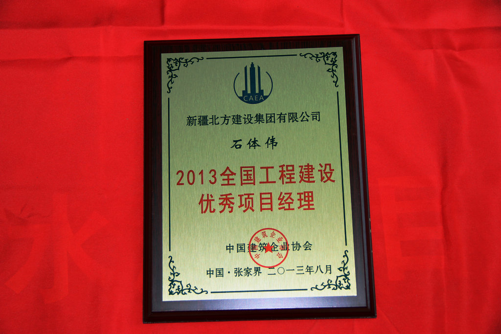 (通訊員 劉婕 周啟航) 從8月31日于張家界召開(kāi)的2013中國房地產(chǎn)/建筑業(yè)優(yōu)秀成果發(fā)布會(huì )暨行業(yè)發(fā)展趨勢研討會(huì )上獲悉,新疆北方建設集團路橋分公司石體偉榮獲全國工程建設優(yōu)秀項目經(jīng)理。據了解,“全國工程建設優(yōu)秀項目經(jīng)理”的評選工作,是經(jīng)各行業(yè)、地方建設(建筑、施工)行業(yè)協(xié)會(huì )推薦,由大會(huì )評審委員會(huì )審定,本次共評出全國工程建設優(yōu)秀項目經(jīng)理2名,石體偉為我集團公司本年度唯一獲此殊榮的項目經(jīng)理。